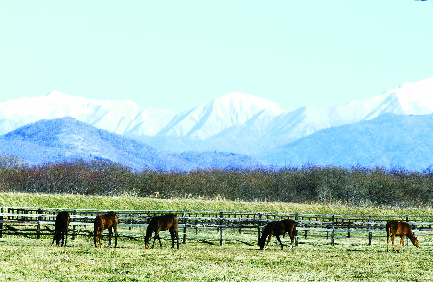 以日高山脉为背景,有限的良种马